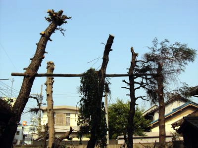 今回の作業では、まず、枝を払って棒立ちにしました。