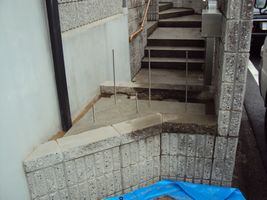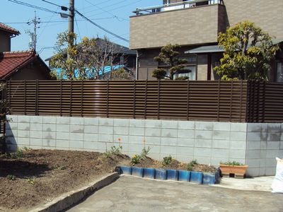 ブロックを積み、上にフェンスをたてる工事です。