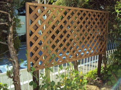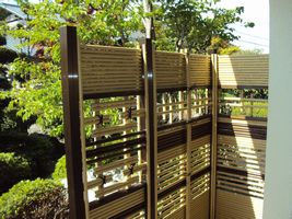 この類の「ラティス」というフェンスは安価なものから高価なものまでありますが、安価なものを使えば低価格で施工できます(安価なものは腐るのも早いですが、定期的に防腐剤を塗れば、耐用年数をのばせます。)
