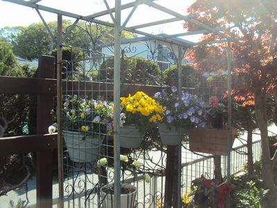 庭や家のまわりにはきれいに咲いた草花の鉢植えがたくさんならび、たんねんに世話をしていらっしゃるのがひと目でわかりました。