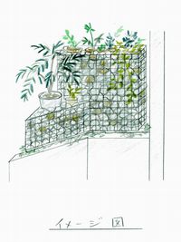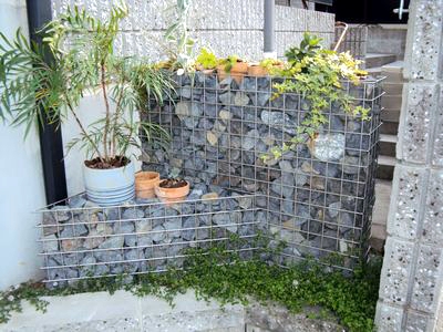 スチール製のメッシュボックスに石材を入れた斬新なフェンスにとりかえました。