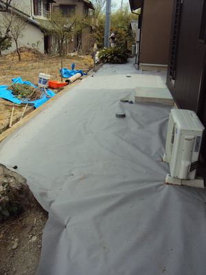 既設の砂利の下に防草シートをしく工事です