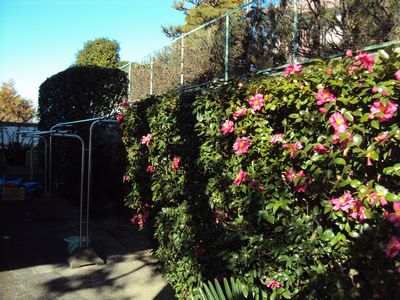 キンモクセイとサザンカの生垣です。