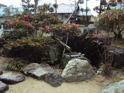 つくばいのある落ち着いた風景です。