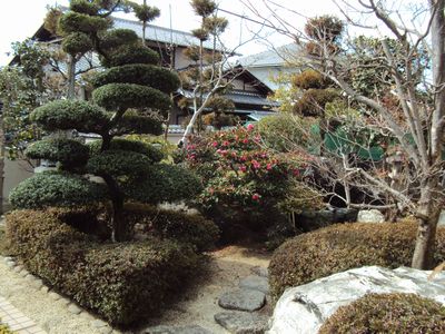 もう少したつと、カンツバキがいっぱいに咲いて庭を華やかにかざります。