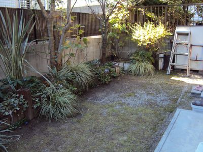 こちらのお庭のように、「植木のスペース」「歩き回るスペース」を分け、植木のスペースは地味たっぷりと落ち葉などで土を養生し、歩き回るスペースはさっぱりきれいにしておく・・・というのもいいやり方です
